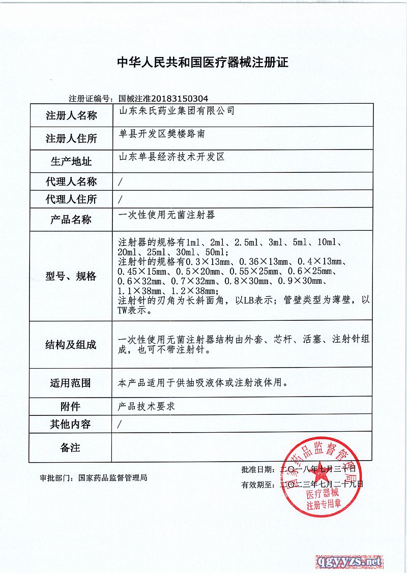 | 其它說(shuō)明 | 【產(chǎn)品特點(diǎn)】無(wú)菌注射器材料嚴(yán)格按照標(biāo)準(zhǔn)執(zhí)行,經(jīng)環(huán)氧乙烷滅菌,無(wú)菌、無(wú)熱原;注射針頭采用醫(yī)用不銹鋼,斜口平整刃角,角度標(biāo)準(zhǔn)易穿刺,疼痛小;活塞頭與管壁貼合度高,與針頭接觸緊密,不易漏液;單只獨(dú)立包裝帶針;刻度清晰,多種規(guī)格;斜面針尖設(shè)計(jì),針尖鋒利,可使患者在接受注射時(shí)減輕痛感。 |