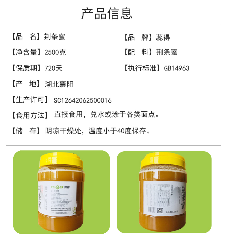 | 產品名稱 | 蕊得蜂蜜荊條蜜2500克 |