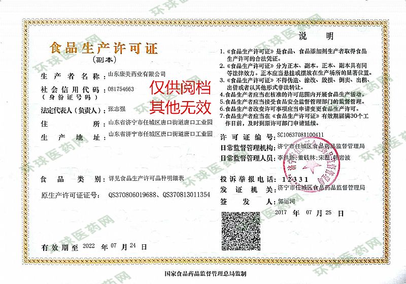 生產(chǎn)企業(yè): 山東康美藥業(yè)有限公司
