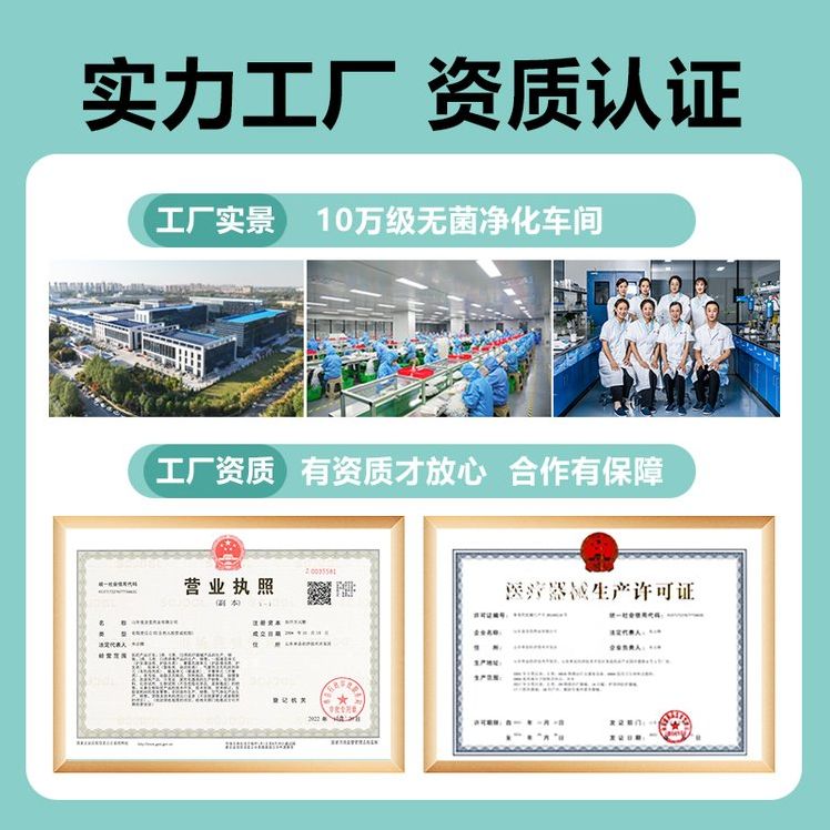 4、權威認證:國家FDA認證的一類醫療器械文號,藥監局可查,十萬級凈化標準生產車間,品質有保障。