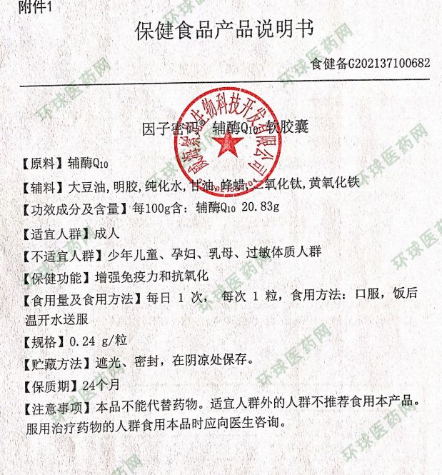 產(chǎn)品名稱: 因子密碼®;輔酶Q10軟膠囊