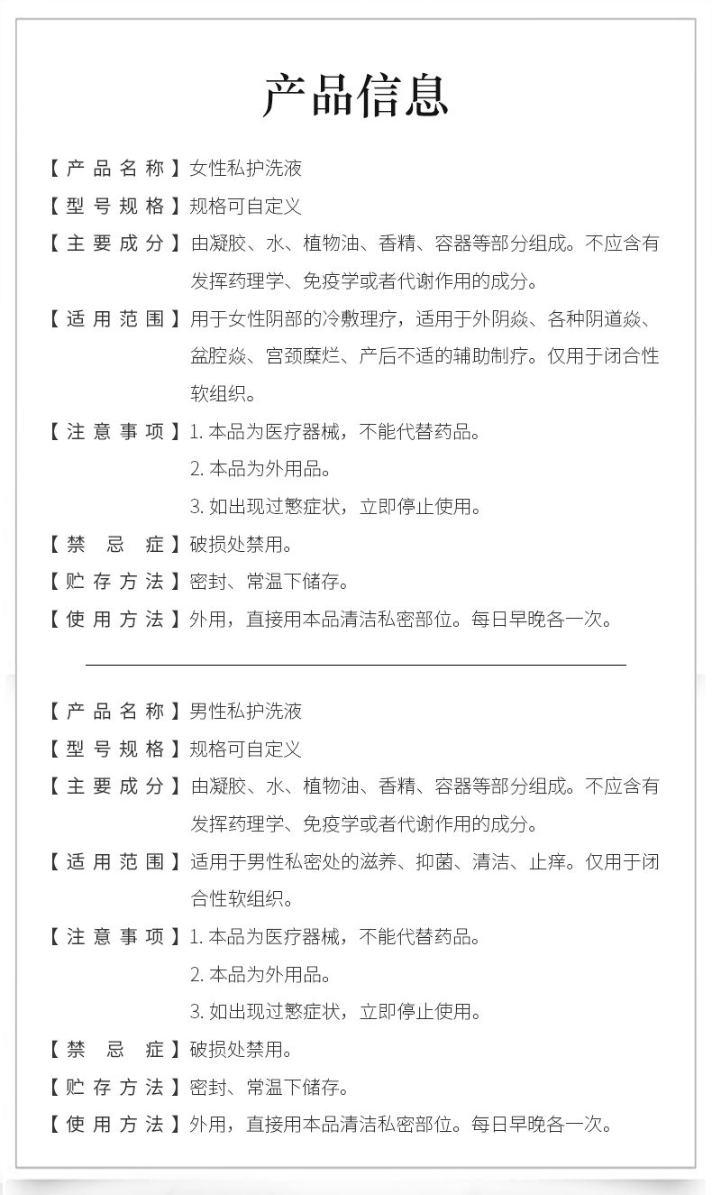 | 產(chǎn)品賣點 | 女性私護洗液,男性私護洗液 |