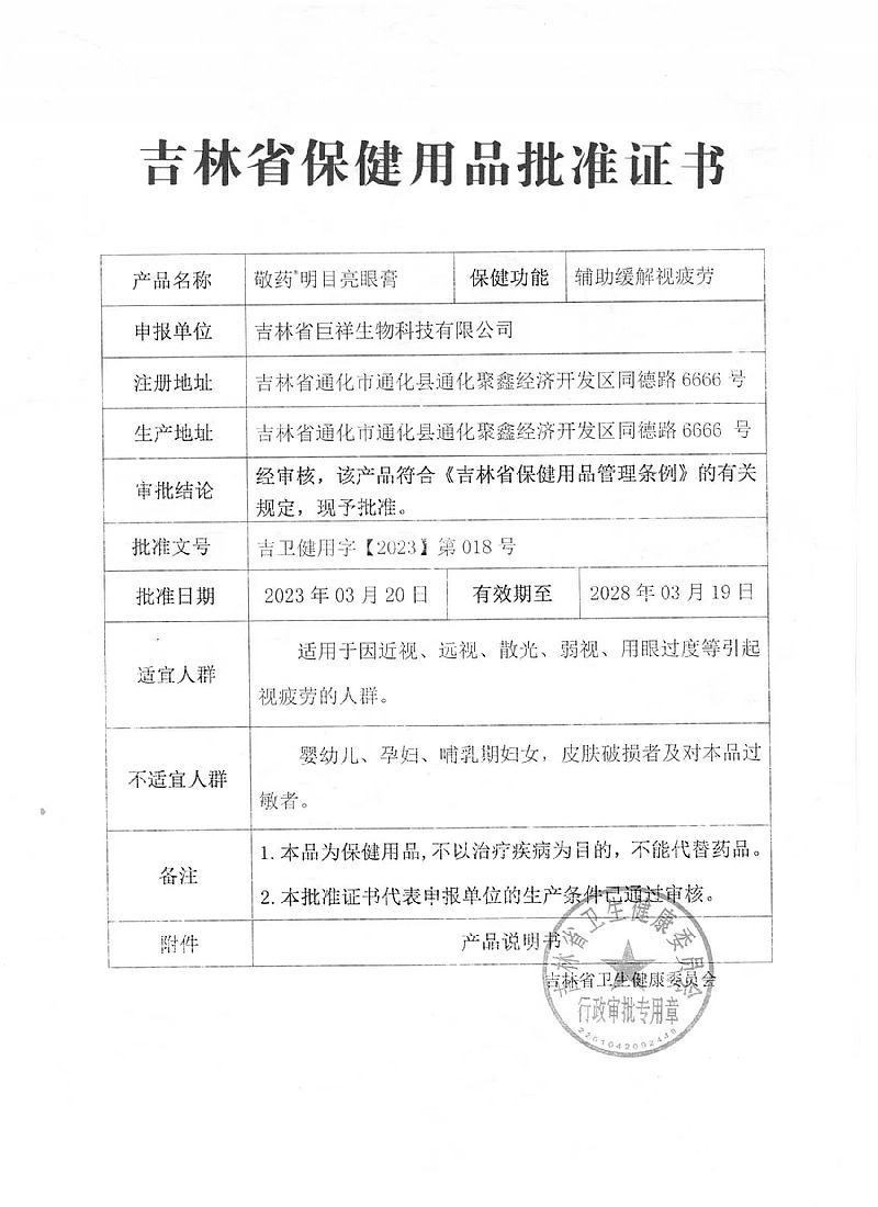 批準(zhǔn)文號(hào): 吉衛(wèi)健用字2023第018號(hào) 【驗(yàn)證真?zhèn)?/a>】