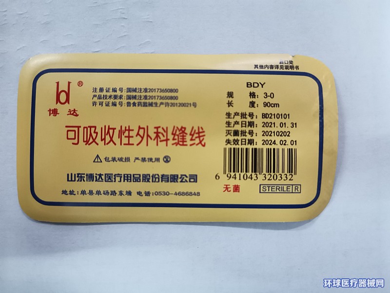 | 補(bǔ)充說明 | 型號規(guī)格:規(guī)格型號:產(chǎn)品分為帶針縫合線與不帶針縫合線兩種?p合線規(guī)格型號:9-0、8-0、7-0、6-0、5-0、4-0、3-0、2-0、0、1、2、3、4?p合線長度:2cm、5cm、10cm、20cm、30cm、45cm、60cm、70cm、75cm、90cm、100cm、125cm、150cm、200cm?p合針類型:圓、三角、短刃三角、鏟型、鈍、鏟型針;按針體彎曲弧度分別有1/4弧、3/8弧、1/2弧、3/4弧、5/8弧、半彎,直針?p合針長度:6mm、11mm、12mm、13mm、15mm、16mm、17mm、18mm、19mm、20mm、22mm、24mm、26mm、27mm、28mm、31mm、36mm、37mm、38mm、40mm、44mm、50mm、52mm?p合針直徑:0.2~1.3mm。 結(jié)構(gòu)及組成/主要組成成分:可吸收性外科縫線由健康青山羊腸衣中的膠原蛋白加工制成,腸衣中的主要成分是膠原蛋白,在人體內(nèi)經(jīng)酶解后被組織吸收。為鉻制和平制縫線,包裝袋內(nèi)有異丙醇保存液?p合針基本材料為3Cr13不銹鋼絲。分帶針與不帶針兩種。γ射線滅菌。 |