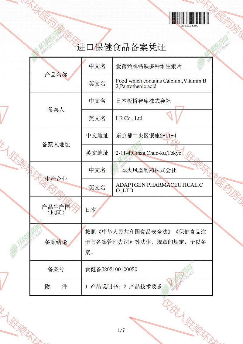 批準(zhǔn)文號: 食健備J202100100020 【驗(yàn)證真?zhèn)?/a>】