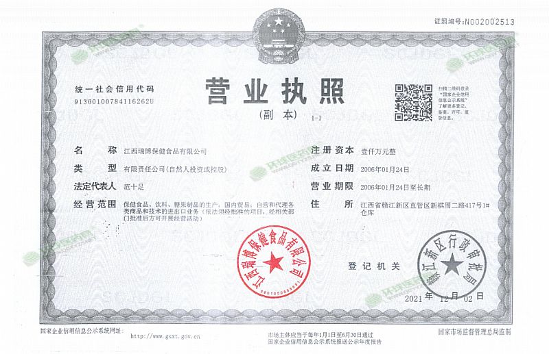 生產(chǎn)企業(yè): 江西瑞博保健食品有限公司