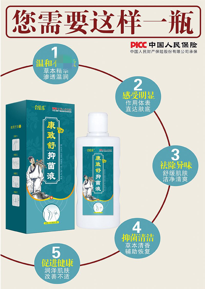| 主要成分 | 槐枝提取物、白茅根提取物、五倍子提取物、苦參提取物、馬兜鈴提取物、紅芪提取物、椿白皮提取物、赤芍提取物、北豆根提取物、地膚子提取物、黃柏提取物、金銀花提取物、大茅香提取物。 |