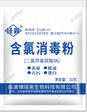 | 補充說明 | 【注意事項】 1.外用消毒劑,不得口服。置于兒童不易觸及處。 2.開啟使用后剩余消毒劑包裝應封口,避免受潮,宜現配現用。 3.本品不得用于金屬物品消毒,對織物有漂白和腐蝕作用,慎用。 4.密封,置于陰涼、干燥處保存。 有 效 期24個月 【包裝規格】10克/袋 20克/袋 250克/袋 500克/袋 【生產企業衛生許可證號】(魯)衛消證字(2022)第1409號 【生產日期或生產批號】生產日期見包裝 【執行標準】Q/LQBRL001 【企業名稱】臨清博瑞萊生物科技有限公司 【生產地址】山東省聊城市臨清市金郝莊鎮李洼村委會向西600米路北 |