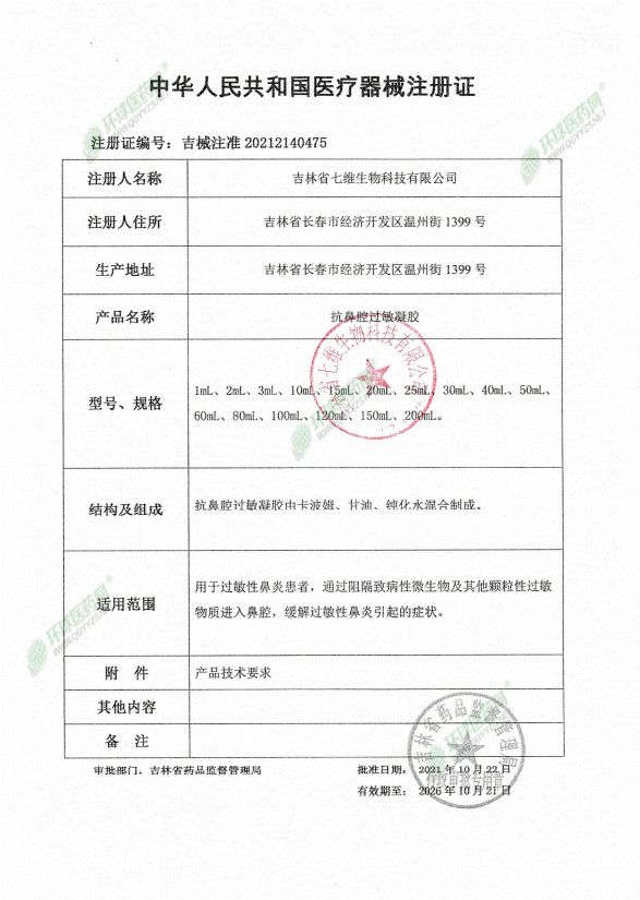 | 產品用途 | 用于過敏性鼻炎患者,通過阻隔致病性微生物及其他顆粒性過敏物質進入鼻腔,緩解過敏性鼻炎引起的癥狀 |