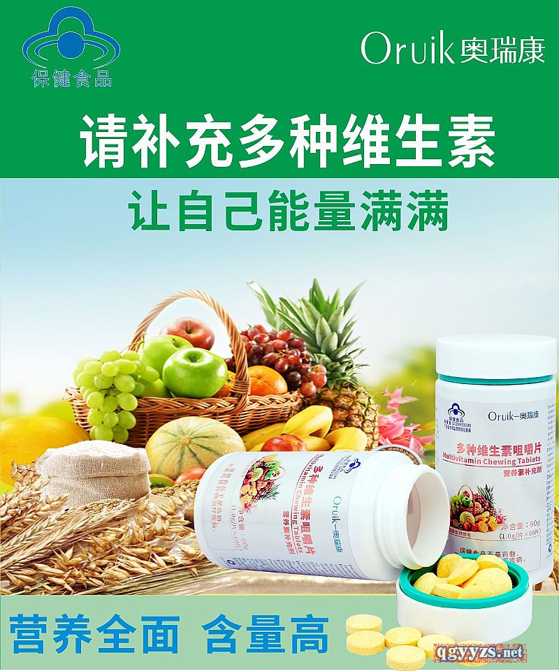 | 補充說明 | 【產(chǎn)品名稱】多種維生素咀嚼片。招商:熊-13045859985 【原料】維生素D3,鹽酸硫胺素,核黃素,鹽酸吡哆醇, 煙酸,L-抗壞血酸 【輔料】山梨糖醇,麥芽糊精,D-甘露糖醇,預膠化淀粉,硬脂酸鎂,二氧化硅,檸檬酸,L-蘋果酸,三氯蔗糖,辛烯基琥珀酸淀粉鈉,阿拉伯膠,菜籽油,磷酸三鈣,包衣預混劑(羥丙基甲基纖維素,聚乙二醇),甜橙香 精,牛奶香精 【功效成分及含量】每片含: 維生素D3 8.7μg 維生素B1 1.6mg 維生素B2 1.6mg 維生素B6 1.6mg 煙酸 11.6mg 維生素C 1.5mg 【適宜人群】需要補充多種維生素的14-17歲人群及成人、 孕婦、乳母 【不適宜人群】3歲以下人群 【保健功能】補充多種維生素 【食用量及食用方法】每日1次,每次1片, 食用方法:口服,咀嚼食用 【保質(zhì)期】24個月 【規(guī)格】1.0g/片 |