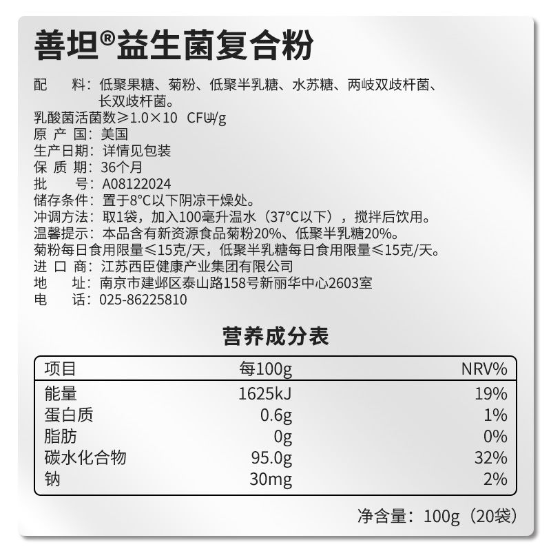 | 主要成分 | 成分:低聚果糖、菊粉、低脂半乳糖、水蘇糖、兩歧雙歧桿菌、長雙歧桿菌。 |