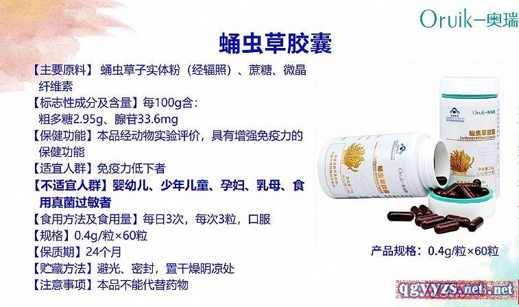 | 產(chǎn)品規(guī)格 | 0.4g/粒*60粒 |
