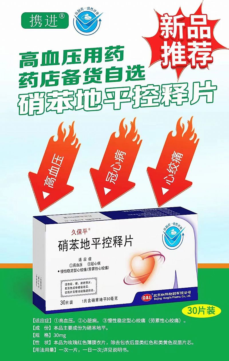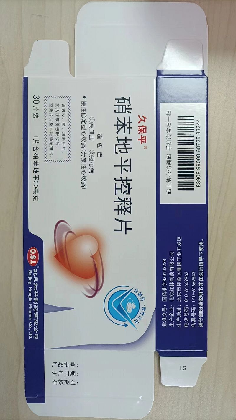 | 補(bǔ)充說(shuō)明 | 【性狀】本品為粉紅色的薄膜片。 【禁忌】1.對(duì)硝苯地平過(guò)敏者禁用。2.心源性休克。 【注意事項(xiàng)】 1.硝苯地平的血管擴(kuò)張作用會(huì)導(dǎo)致血壓的明顯下降。下列患者慎用:低血壓患者、心力衰竭患者,需要調(diào)整糖尿病治療的糖尿病患者,接受透析治療的惡性高血壓患者和不可逆腎衰竭患者。2.因?yàn)橄醣降仄綗o(wú)β-腎上腺受體阻滯的活性,因此不能防止以前服用的任何β-受體阻滯劑突然停藥的反跳危險(xiǎn),因此,對(duì)需停用β-受體阻滯劑的患者應(yīng)逐漸減量,*好不少于8~10天,以免發(fā)生反跳。3.已有少數(shù)報(bào)道關(guān)于病人在服藥30分鐘內(nèi)出現(xiàn)由于心肌缺血導(dǎo)致的心絞痛。。4.低血壓。絕大多數(shù)患者服用硝苯地平后僅有輕度低血壓反應(yīng),個(gè)別患者出現(xiàn)嚴(yán)重的低血壓癥狀。這種反應(yīng)常發(fā)生在劑量調(diào)整期或加量時(shí),特別是合用?-受體阻滯劑時(shí)。在此期間需監(jiān)測(cè)血壓,尤其合用其他降壓藥時(shí)。5.心絞痛和/或心肌梗死極少數(shù)患者,特別是嚴(yán)重冠脈狹窄患者,在服用硝苯地平或加量期間,降壓后出現(xiàn)反射性交感興奮而心率加快,心絞痛或心肌梗塞的發(fā)生率增加?捎美騽┲委。對(duì)于伴充血性心力衰竭的患者,需分辯水腫是否由于左室功能進(jìn)一步惡化所致。6.對(duì)診斷的干擾。應(yīng)用本品時(shí)偶可有堿性磷酸酶、肌酸磷酸激酶、乳酸脫氫酶、門冬氨酸氨基轉(zhuǎn)移酶和丙氨酸氨基轉(zhuǎn)移酶升高,一般無(wú)臨床癥狀,但曾有報(bào)道膽汁淤積和黃疸;血小板聚集度降低,出血時(shí)間延長(zhǎng);直接Coomb實(shí)驗(yàn)陽(yáng)性伴/不伴溶血性貧血。7.外周水腫。10%的患者發(fā)生輕中度外周水腫,與動(dòng)脈擴(kuò)張有關(guān)。水腫多初發(fā)于下肢末端, 【不良反應(yīng)】(1)常見(jiàn)服藥后出現(xiàn)外周水腫(外周水腫與劑量相關(guān),服用60mg/日時(shí)的發(fā)生率為4%,服用120mg/日則為12.5%);頭暈;頭痛;惡心;乏力和面部潮紅(10%)。一過(guò)性低血壓(5%),多不需要停藥(一過(guò)性低血壓與劑量相關(guān),在劑量<60mg/日時(shí)的發(fā)生率為2%,而120mg/日的發(fā)生率為5%)。個(gè)別患者發(fā)生心絞痛,可能與低血壓反應(yīng)有關(guān)。還可見(jiàn)心悸;鼻塞;胸悶;氣短;便秘;腹瀉;胃腸痙攣;腹脹;骨骼肌發(fā)炎;關(guān)節(jié)僵硬;肌肉痙攣;精神緊張;顫抖;神經(jīng)過(guò)敏;睡眠紊亂;視力模糊;平衡失調(diào)等(2%)。暈厥(0.5%),減量或與其他抗心絞痛藥合用則不再發(fā)生。(2)少見(jiàn)貧血;白細(xì)胞減少;血小板減少;紫癜;過(guò)敏性肝炎;齒齦增生;抑郁;偏執(zhí);血藥濃度峰值時(shí)瞬間失明;紅斑性肢痛;抗核抗體陽(yáng)性關(guān)節(jié)炎等(<0.5%)。(3)可能產(chǎn)生的嚴(yán)重不良反應(yīng):心肌梗塞和充血性心力衰竭發(fā)生率4%;肺水腫的發(fā)生率2%;心律失常和傳導(dǎo)阻滯的發(fā)生率各小于0.5%。(4)本品過(guò)敏者可出現(xiàn)過(guò)敏性肝炎、皮疹,甚至剝脫性皮炎等。 【孕婦及哺乳期婦女用藥】禁用。 【兒童用藥】禁用。 【老年用藥】服用本品后,其半衰期延長(zhǎng),Cmax與AUC提高,注意從*低劑量開(kāi)始服用,以減少不良反應(yīng)的發(fā)生率。 【藥理毒理】硝苯地平為二氫吡啶類鈣拮抗劑,可選擇性抑制鈣離子進(jìn)入心肌細(xì)胞和平滑肌細(xì)胞的跨膜轉(zhuǎn)運(yùn),并抑制鈣離子從細(xì)胞內(nèi)庫(kù)釋放,而不改變血漿鈣離子濃度。藥理作用本品能同時(shí)舒張正常供血區(qū)和缺血區(qū)的冠狀動(dòng)脈,拮抗自發(fā)的或麥角新堿誘發(fā)的冠狀動(dòng)脈痙攣,增加冠狀動(dòng)脈痙攣病人心肌氧的遞送,解除和預(yù)防冠狀動(dòng)脈痙攣。并可抑制心肌收縮,降低心肌代謝,減少心肌耗氧量。另一方面能舒張外周阻力血管,降低外周阻力,使收縮壓和舒張壓降低,減輕心臟后負(fù)荷。本品可延緩離體心臟的竇房結(jié)功能和房室傳導(dǎo);整體動(dòng)物和人的電生理研究未發(fā)現(xiàn)本品有延緩房室傳導(dǎo)、延長(zhǎng)竇房結(jié)恢復(fù)時(shí)間和減慢竇房結(jié)率的作用。毒理作用致癌、致突變及生殖毒性無(wú)致癌作用。無(wú)致突變性。大劑量應(yīng)用可降低雌性鼠生殖力;可致畸;可引起流產(chǎn)(胎鼠藥物吸收率增加、胎鼠死亡率上升、新生鼠存活率下降)。孕猴服用2/3-2倍于人類*大劑量,可導(dǎo)致小胎盤和絨毛發(fā)育不全;給大鼠3倍于人類*大劑量,可引起妊娠延長(zhǎng)。 【藥物過(guò)量】尚無(wú)足夠的研究資料,F(xiàn)有文獻(xiàn)表明,增加劑量可使外周血管過(guò)度擴(kuò)張,導(dǎo)致或加重低血壓狀態(tài)。藥物過(guò)量導(dǎo)致臨床上出現(xiàn)低血壓的患者,應(yīng)及時(shí)給予心血管支持治療,包括心肺監(jiān)測(cè)、抬高下肢、注意循環(huán)血容量和尿量。若無(wú)禁忌癥,可用血管收縮藥(去甲腎上腺素)恢復(fù)血管張力和血壓。肝功能損害的患者藥物清除時(shí)間延長(zhǎng)。血液透析不能清除硝苯地平 【藥代動(dòng)力學(xué)】18名健康男性單次口服本品30mg后,其t1/2為9.9±6.8小時(shí),C0.5max為27.5±15.9ng/ml,多次給藥后穩(wěn)態(tài)峰濃度C0.5max為40.8±12.5ng/ml,穩(wěn)態(tài)谷濃度為C0.5max為27.7±11.6ng/ml,峰高比