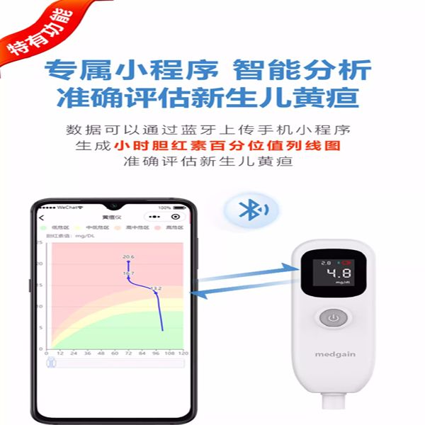 | 產(chǎn)品賣點 | 1.3位數(shù)字讀取,無需對照換算表格,直接讀取測試結果; 2.兩種單位顯示mg/dl、μmol/l,可根據(jù)需要切換單位; 3.自動計算2-5次的平均值,測量值和平均值同時顯示; 4.配備藍牙,支持數(shù)據(jù)上傳; 5.專用小程序,自動平均,智能分析,生成小時膽紅素**位值列線圖; 6.本機擁有電量提示功能,便于及時充電; 7.電池采用鎳氫電池,充一次電可使用800多次; 8.操作簡單方便,流線型設計,手感更舒適; 9.液晶顯示屏帶背光,方便夜間使用; 10.儀器5分鐘無操作自動關機。 |