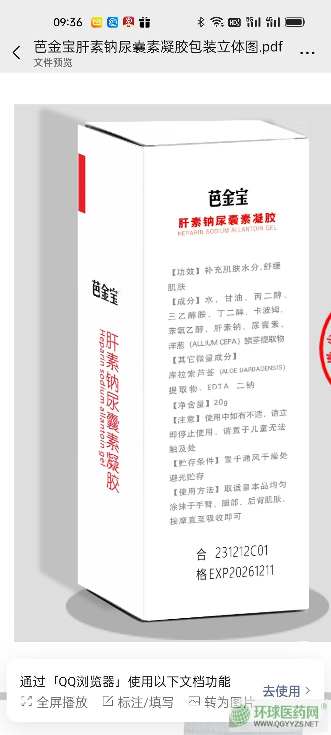 產(chǎn)品名稱: 肝素鈉尿囊素凝膠