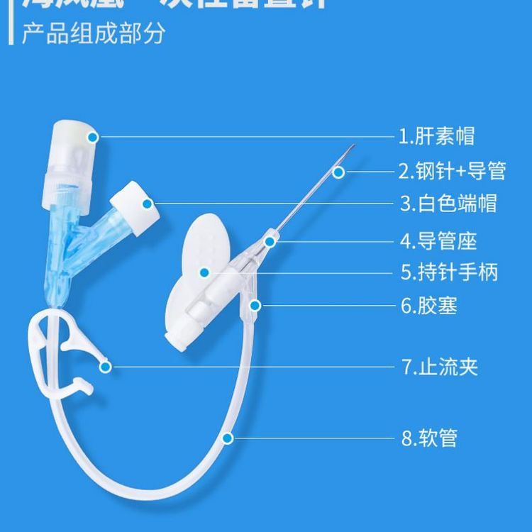 | 主要成分 | Y型留置針主要由不銹鋼針管、導(dǎo)管(套管)、金屬楔、導(dǎo)管座(Y型)、隔離塞、針管座、長導(dǎo)管(連接管)、長導(dǎo)管連接座、肝素帽、螺旋帽、滑動夾緊板、針管保護套組成。 |