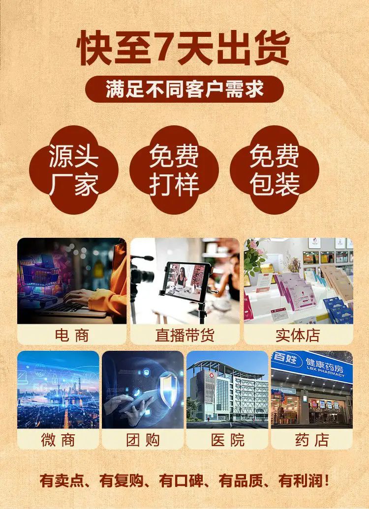 - 海旭醫(yī)療主要承接各類暖宮貼定制、遠(yuǎn)紅外理療貼代加工、磁療貼貼牌加工、穴位敷貼廠家、灸熱貼代加工、退熱貼代加工、燙熨治療包定制、小兒咳 喘腹瀉膏藥定制加工、艾灸貼定制、化妝品定制、保健食品定制、噴劑、乳膏類加 工等醫(yī)院臨床和終端診所所需的系列產(chǎn)品。公司的經(jīng)營范圍有:骨科,婦科、男科、手術(shù)科、五官科和小兒科等。