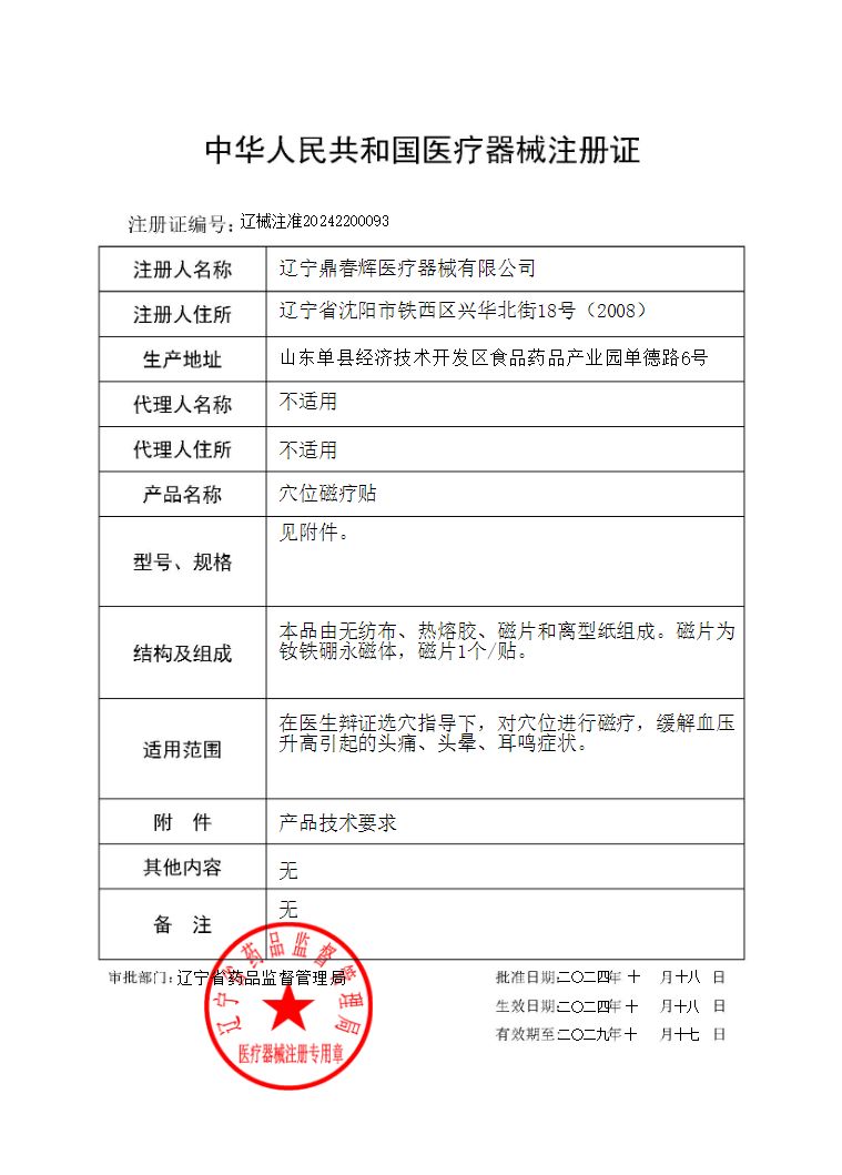 | 產(chǎn)品用途 | 在醫(yī)生辯證選穴指導下,對穴位進行磁療,緩解血壓升高引起的頭痛、頭暈、耳鳴癥狀 |