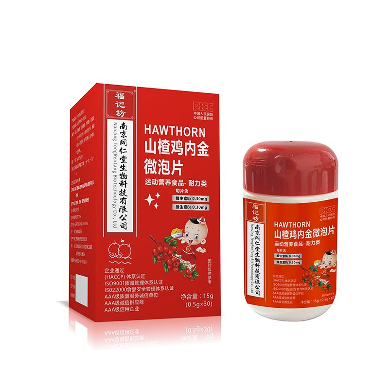 | 主要成分 | 山梨糖醇,赤蘚糖醇,檸檬酸,碳酸氫鈉,山楂粉(5%),雞內(nèi)金粉(5%),硬脂酸鎂,三氨蔗糖,食用香精,維生素B1,維生素B2。 |