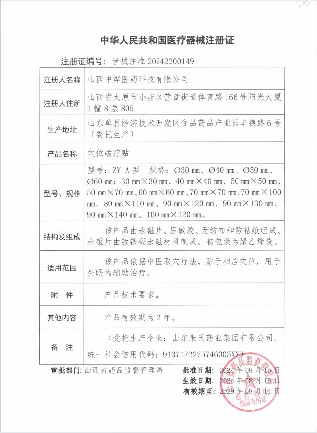 | 產(chǎn)品用途 | 該產(chǎn)品依據(jù)中醫(yī)取穴療法,貼于相應(yīng)穴位,用于失眠的輔助治療。 |