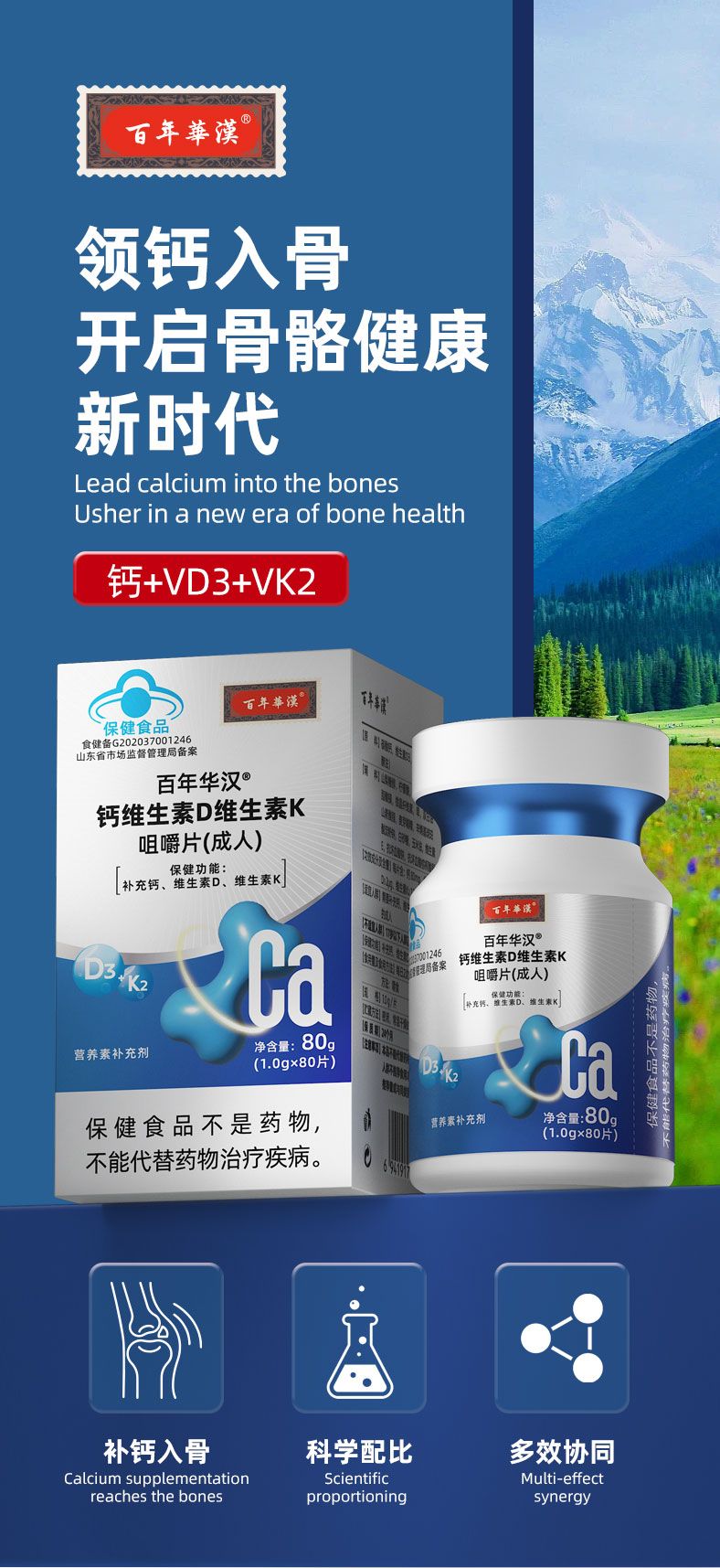 產(chǎn)品名稱: 藍(lán)帽保健食品鈣維生素D維生素K