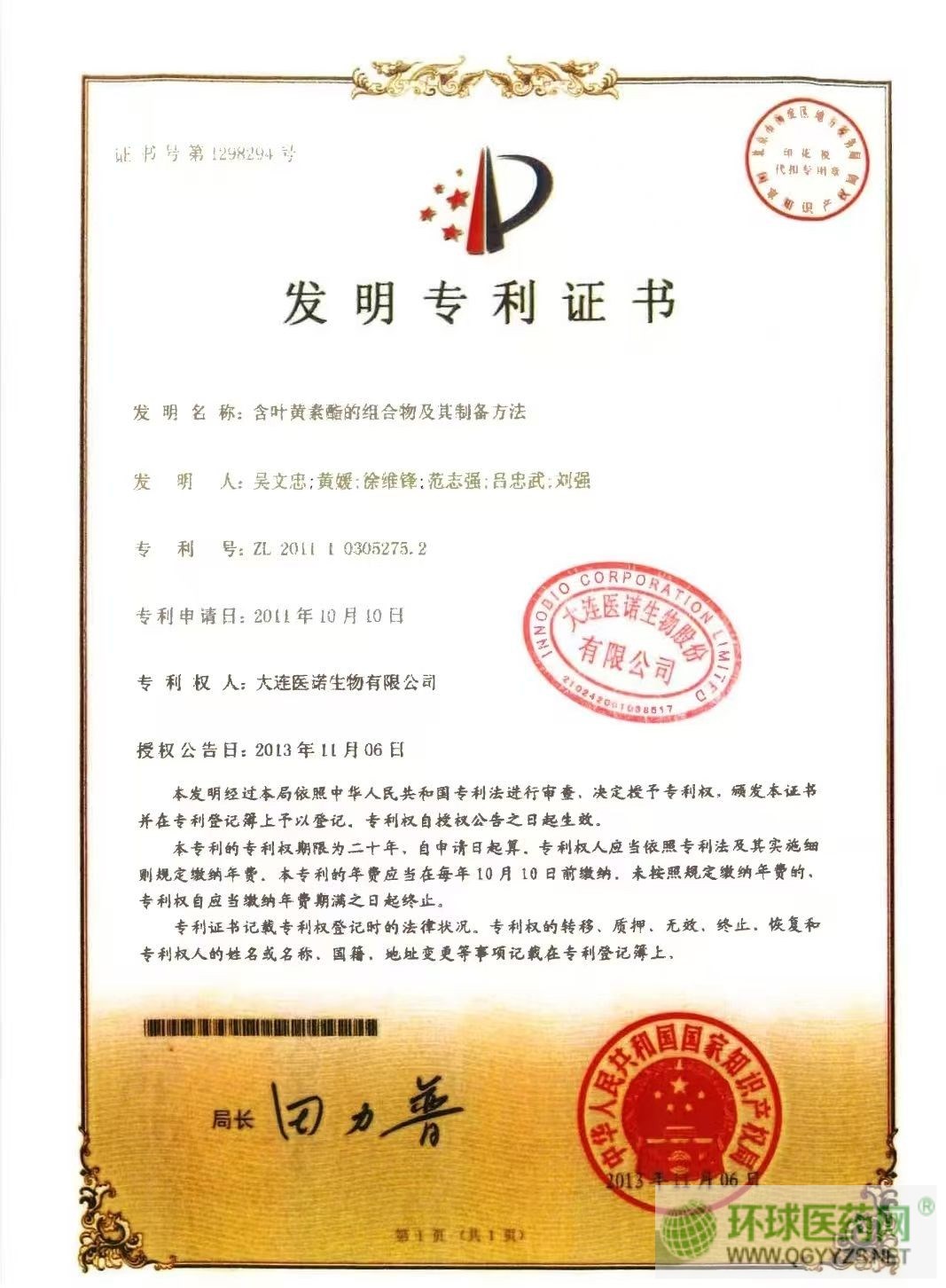 生產(chǎn)企業(yè): 大連醫(yī)諾生物股份有限公司