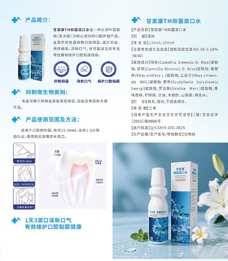 | 產品名稱 | 甘漱康™抑菌漱口水 |