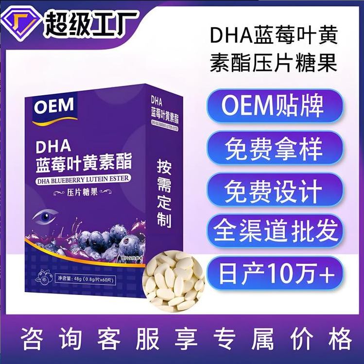 藍莓葉黃素酯壓片糖果源頭廠家維生素C壓片糖果
