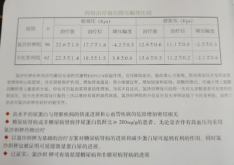 低血壓及電解質/體液平衡失調血容量不足的病人(例如應用大劑量利尿藥治療的病人),可發生癥狀性低血壓。在使用本品治療前應該糾正這些情況,或使用較低的起始劑量。(見用法用量)。肝功能損害傷藥代動力學資料表明,肝硬化病人氯沙坦的血漿濃度明顯增加,故對有肝功能損害病史的病人應該考慮使用較低劑量(見用法用量)。腎功能損害傷由于抑制了腎素-血管緊張素系統,已有關于敏感個體出現包括腎衰在內的腎功能的變化的報導;停止治療后,這些腎功能的變化可以恢復。對于雙側腎動脈狹窄或只有單側腎臟而腎動脈狹窄的病人,影響腎素-血管緊張素系統的其他藥物可增加其血尿素和血清肌酐含量。使用本品也有類似的報導。停止治療后,這些腎功能的變化可以恢復。